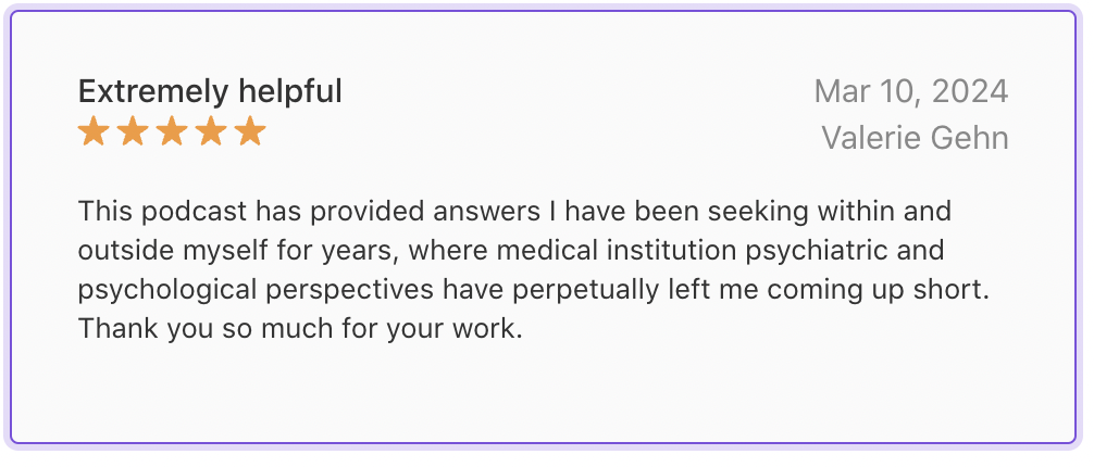 “The [Depth Work] Podcast is such a breath of fresh air! As a person who works in the mental health and wellness space, I think it’s beyond important to continually lift the voices of practitioners who are stepping outside the box in order to create holistic/whole person wellness models. This is such crucial work and this podcast profoundly adds to the shifting dialogue around mental health & the human experience! A must listen for sure!”