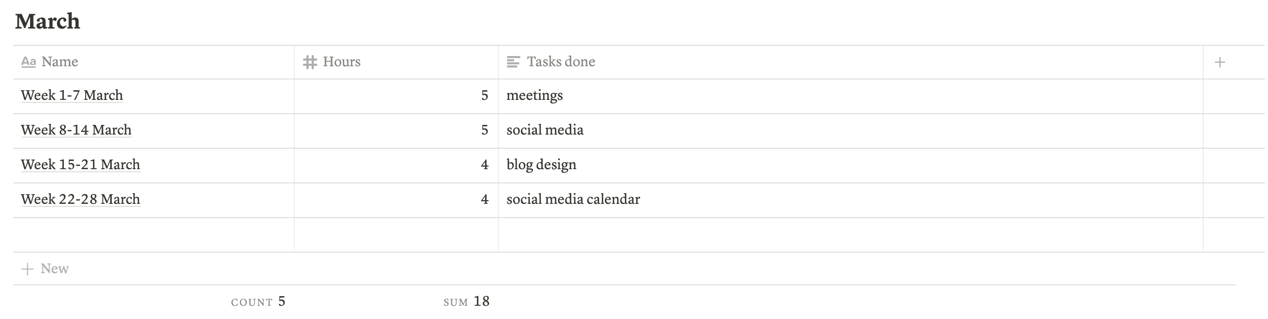 Once you get familiar with Notion, you’ll see that the possibilities are endless. You can easily calculate, for example, how many hours you worked on a project. Of course, this is super simple task, but once you get familiar with formulas, you will achieve so much more in less time.